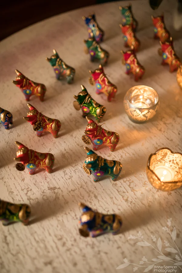 The guests enjoyed dancing the night away and they were gifted hand-painted Peruvian Bulls (to symbolize good fortune in life) as a “thank you” from the newlyweds upon departure. Anna + Tony left their reception in style: in a vintage rolls royce! It was the perfect classy ending to their beautiful day. Check out the photos below from Anna and Spencer Photography! xx